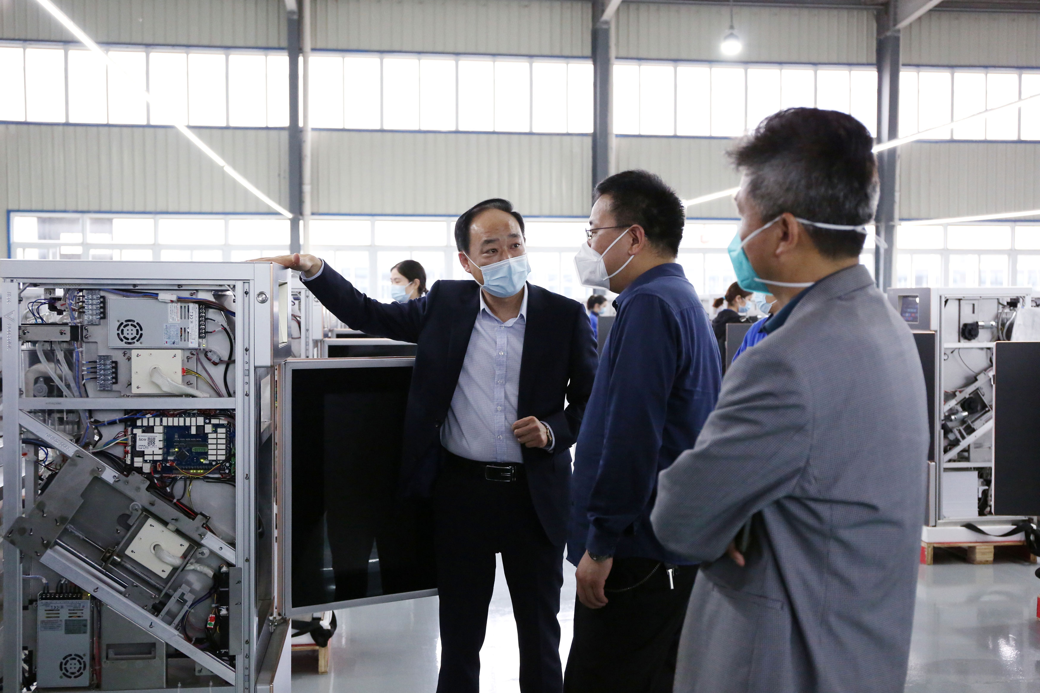 黃院長(zhǎng)一行首先來到智能制造車間,董事長(zhǎng)助理倪曙東向他介紹了世界首創(chuàng)、中國(guó)獨(dú)創(chuàng)的智能化數(shù)字烹飪機(jī)器人產(chǎn)品和自主研發(fā)全球領(lǐng)先并擁有118項(xiàng)專利的智能化數(shù)字機(jī)器人咖啡機(jī)、智能化數(shù)字保鮮柜等智能產(chǎn)品。黃院長(zhǎng)在現(xiàn)場(chǎng)還不時(shí)提出詢問和說出自己的看法。黃院長(zhǎng)聽了介紹后,稱贊道:“在我們的企業(yè)能制造出科技含量高的智能產(chǎn)品 。這很好,很先進(jìn),真是了不起?!?/span>