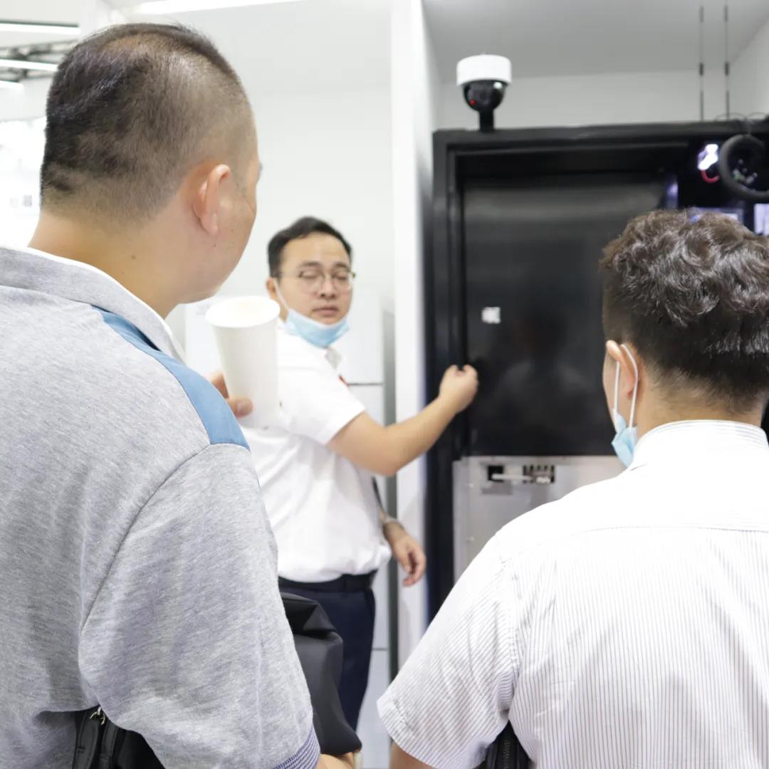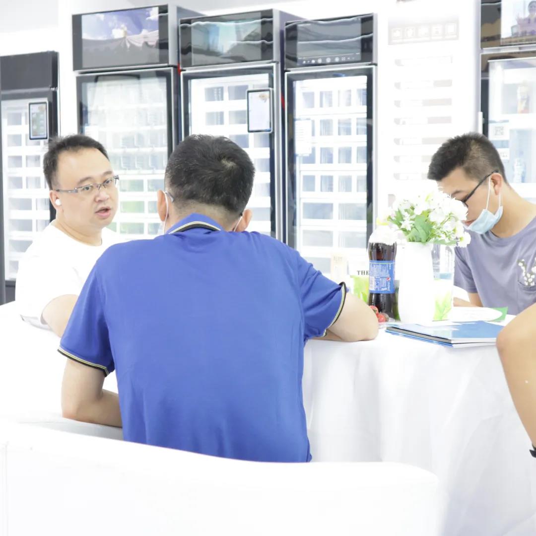 倪曙東總經(jīng)理與慕名前來(lái)參觀的重慶市政府采購(gòu)主管官員在現(xiàn)場(chǎng)交談
