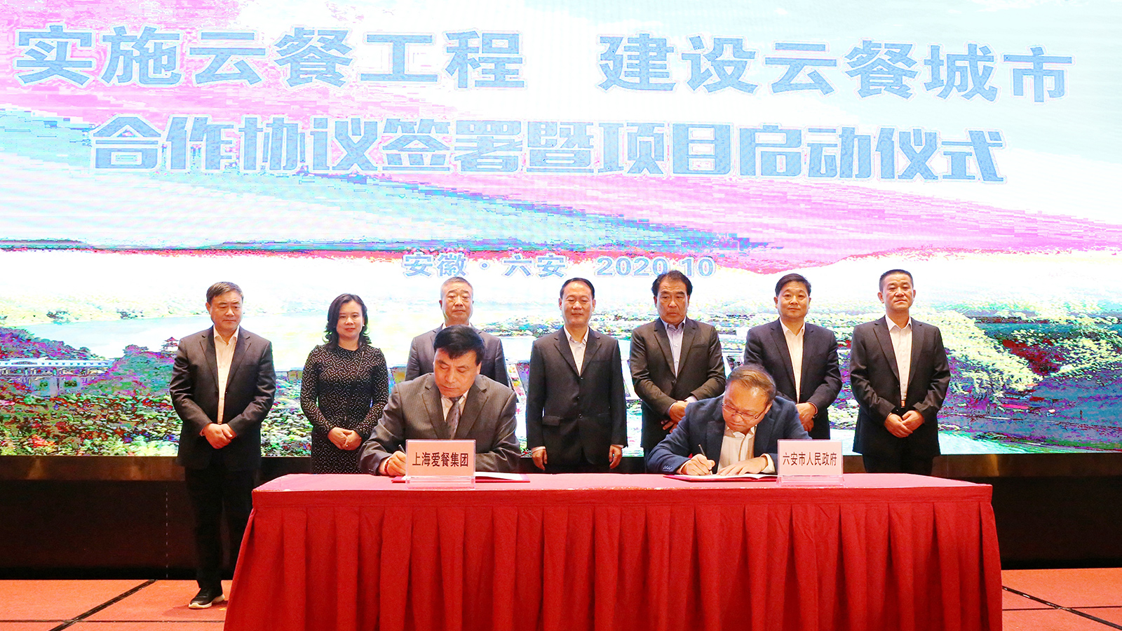 上海愛餐集團(tuán)與索伊集團(tuán)簽署戰(zhàn)略合作協(xié)議,六安市委書記葉露中、六安市人大常委會(huì)時(shí)任主任王勝、六安市開發(fā)區(qū)主任盧俊、上海愛餐集團(tuán)董事長何青、索伊集團(tuán)董事長王瓊峰等領(lǐng)導(dǎo)出席簽約儀式。