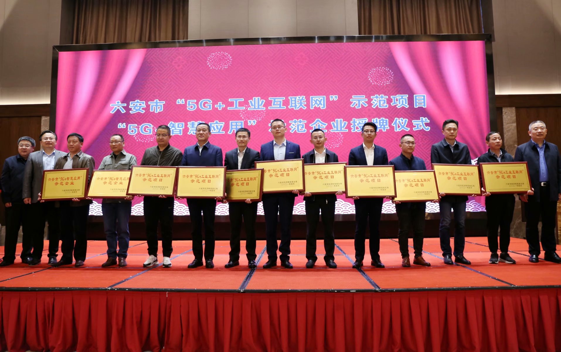 六安市“5G+工業(yè)互聯(lián)網(wǎng)”示范項(xiàng)目獲獎單位合影