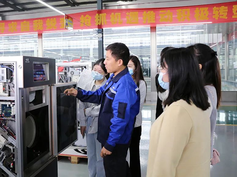 楊德生一行首先參觀了索伊智能制造車間,黨委書記汪顯華對智能化數(shù)字機器人飲料機和智能化數(shù)字烹飪機器人的操作流程和內(nèi)部結(jié)構(gòu)的進行了介紹,并參觀了產(chǎn)品的生產(chǎn)現(xiàn)場。