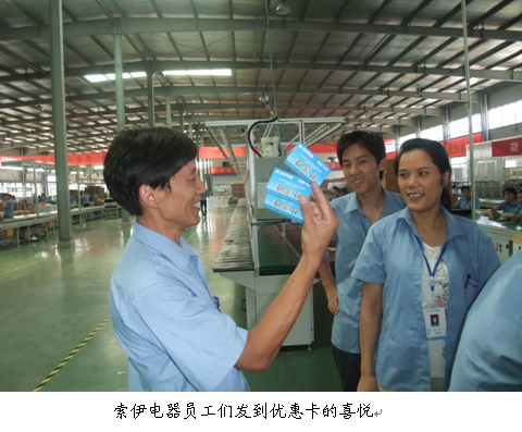 八周年:索伊電器成就品質(zhì)生活,八周年:巔峰力度,只為感恩!本次感恩回饋活動(dòng),每位員工可領(lǐng)取三張優(yōu)惠卡,持此卡購買索伊電器產(chǎn)品可享受內(nèi)部員工優(yōu)惠價(jià)。旨在讓每位員工切實(shí)的得到實(shí)惠,體驗(yàn)自己親手制造的產(chǎn)品帶來的優(yōu)質(zhì)生活;回味8年來與公司同呼吸、共命運(yùn)的激情歲月。