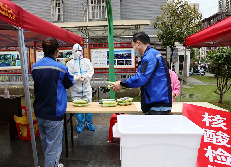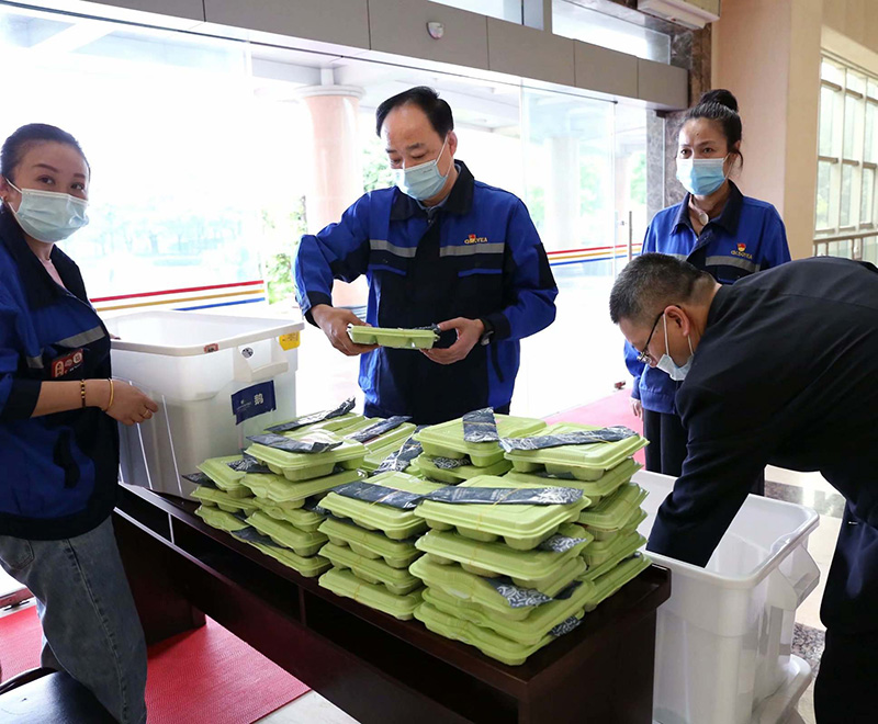 索伊集團(tuán)領(lǐng)導(dǎo)班子辦事果斷,快速高效。從主動(dòng)請(qǐng)纓到分裝配送僅僅只用了二個(gè)多小時(shí)的時(shí)間,1000份愛(ài)心餐出爐。2021年5月15日中午11:30,索伊集團(tuán)董事長(zhǎng)助理倪曙東、黨委書(shū)記汪顯華、索伊君瀾大酒店甲方代表劉杰帶領(lǐng)著集團(tuán)的黨員志愿者們分別乘坐三部車(chē),帶著近千份的智廚愛(ài)心餐前往轄區(qū)內(nèi)的企業(yè)采集點(diǎn)、社區(qū)采集點(diǎn)、衛(wèi)生服務(wù)站及醫(yī)護(hù)人員所住的大酒店進(jìn)行發(fā)放,每到一處,都深深被醫(yī)務(wù)人員和廣大工作者的敬業(yè)精神所感動(dòng),他們放棄了休息日,加班加點(diǎn),為轄區(qū)內(nèi)的所有企業(yè)和居民進(jìn)行核酸檢測(cè),當(dāng)索伊的黨員志愿者們把熱氣騰騰的愛(ài)心餐送到他們手上時(shí),他們也連連說(shuō)謝謝。從十一點(diǎn)半到十二點(diǎn)半,整整一個(gè)小時(shí),索伊集團(tuán)的黨員志愿者不辭勞苦,把愛(ài)心餐送到轄區(qū)內(nèi)的二十多個(gè)采集點(diǎn)。