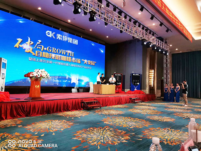 5月29日的上午,來自全國將近400位商家,只需要從君瀾大酒店步行一分鐘,就可以到索伊智能咖啡飲料機(jī)的生產(chǎn)線參觀,這家君瀾大酒店是索伊多元化發(fā)展的一個(gè)支點(diǎn),同時(shí)也將是“愛餐”授權(quán)、索伊制造的世界首創(chuàng)、中國獨(dú)創(chuàng)的“味霸”機(jī)器人廚師菜品研發(fā)基地。從無人自助智能咖啡飲料機(jī)到智能機(jī)器人廚師,加上智能格子柜、智能售賣柜、智能生鮮自提柜等一系列智能產(chǎn)品,安徽索伊從來沒有像現(xiàn)在這樣擁有一個(gè)如此巨大的市場空間。