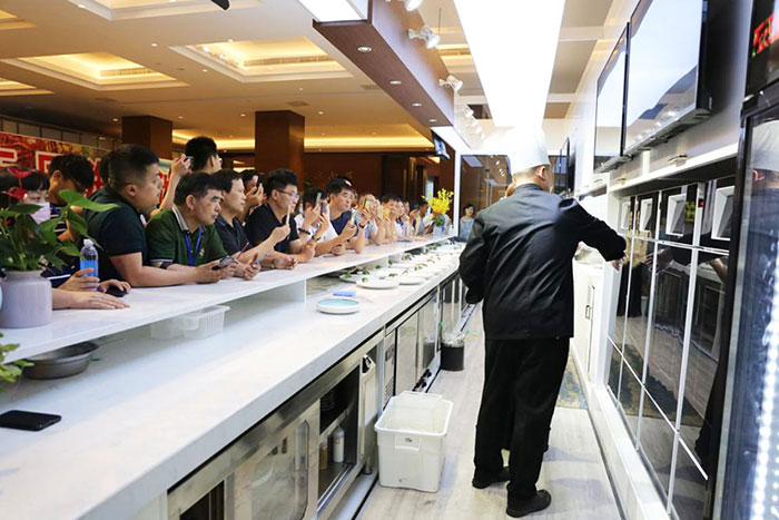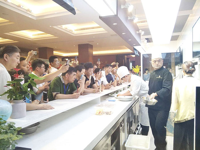 參會人員對酒店現(xiàn)場展出演示的味霸機(jī)器人廚師體驗(yàn)館表示出了極大的興趣,紛紛圍觀拍照、咨詢體驗(yàn)