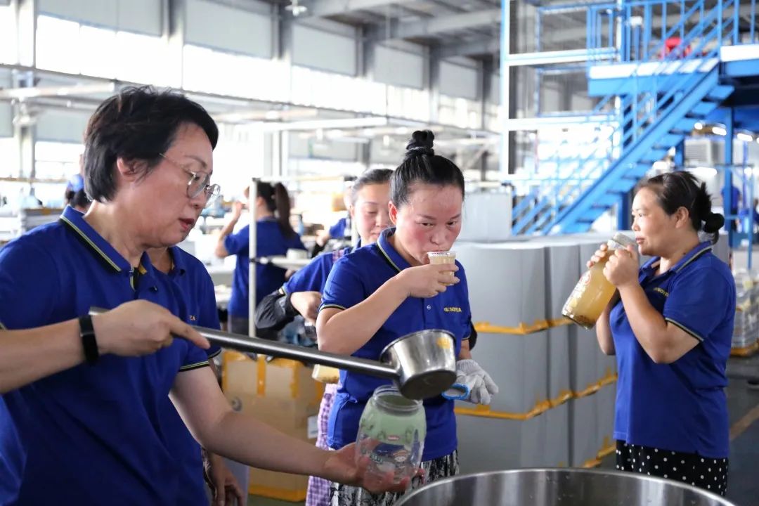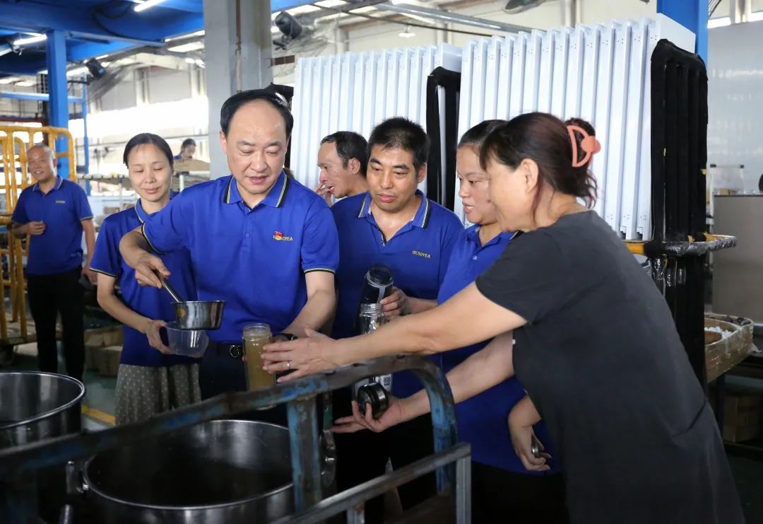 上午十點(diǎn)鐘,為體現(xiàn)公司領(lǐng)導(dǎo)對(duì)廣大員工的關(guān)懷,公司董事長(zhǎng)助理倪曙東、黨委書(shū)記汪顯華來(lái)到車(chē)間,不僅是看望大家,還為大家送來(lái)了清涼可口的綠豆湯。員工們非常的開(kāi)心,笑著說(shuō)“真是又熱又渴,這時(shí)候給我們送綠豆湯真是及時(shí)雨”,一杯又一杯,真是清涼又可口。