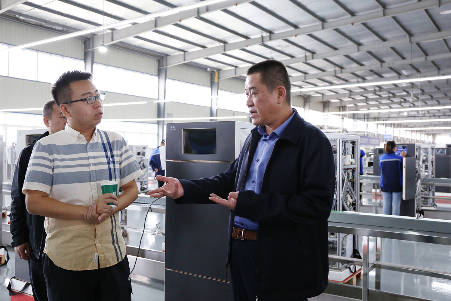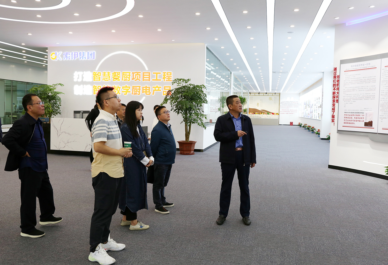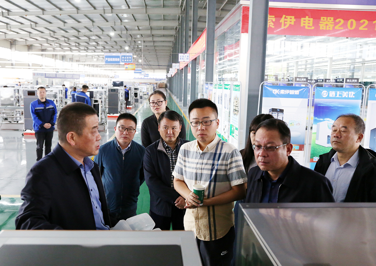 座談結(jié)束后,傅雪柳一行參觀了索伊智能產(chǎn)品生產(chǎn)制造車間和升級轉(zhuǎn)型展示廳,在升級轉(zhuǎn)型展示廳里,董事長王瓊峰介紹了集團在目前電器制造企業(yè)日趨嚴(yán)峻的競爭市場浪潮中,從實際出發(fā)尋求新的突破,通過市場調(diào)研、分析后將“打造智慧餐廚項目工程,制造智能數(shù)字廚電產(chǎn)品”作為今后發(fā)展目標(biāo),以人工智能、大數(shù)據(jù)、物聯(lián)網(wǎng)為標(biāo)志的餐廚項目工程,以積極的行動和朝氣蓬勃的心態(tài)迎接新一輪電器產(chǎn)業(yè)革命,抓住時代機遇,贏得發(fā)展先機。也讓索伊生產(chǎn)的智能化廚電產(chǎn)品走進(jìn)千家萬戶,成為安徽智能化家電發(fā)展的新名片。