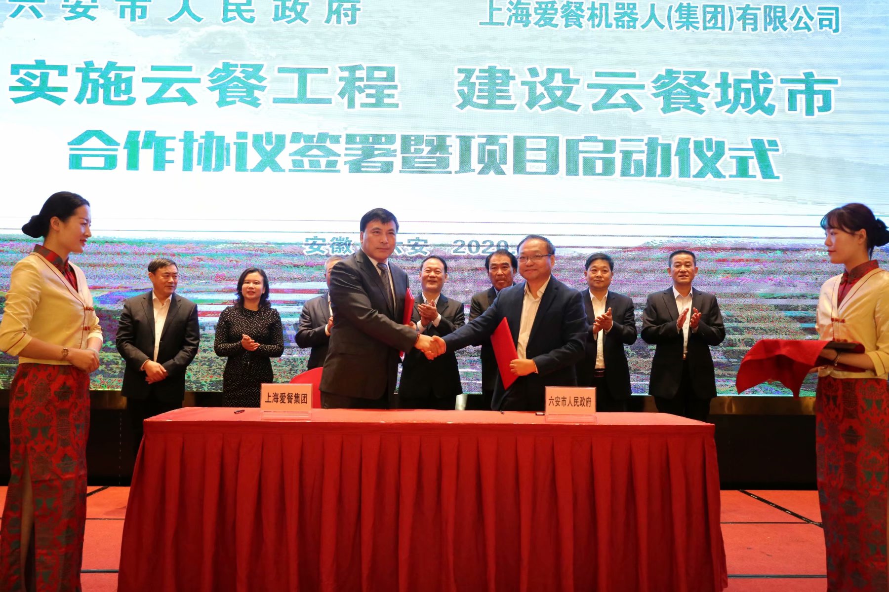 六安市人民政府副市長(zhǎng)束學(xué)龍與上海愛(ài)餐機(jī)器人有限公司總裁何光共同簽署了合作協(xié)議,市委副書(shū)記、市長(zhǎng)葉露中、愛(ài)餐機(jī)器人創(chuàng)始人、董事長(zhǎng)何青、六安開(kāi)發(fā)區(qū)管委會(huì)主任盧俊、上海愛(ài)餐機(jī)人公司董事何志光、總裁辦主任姚國(guó)冠、六安市人民政府秘書(shū)長(zhǎng)陸純、安徽索伊集團(tuán)董事長(zhǎng)王瓊峰見(jiàn)證簽約儀式。簽約儀式結(jié)束后,葉露中市長(zhǎng)再次召集各縣區(qū)政府常務(wù)副縣(區(qū))長(zhǎng),要求他們進(jìn)一步推廣實(shí)施云餐工程,建設(shè)云餐城市項(xiàng)目,提建議,抓落實(shí),希望更好推動(dòng)此項(xiàng)工程的落地。