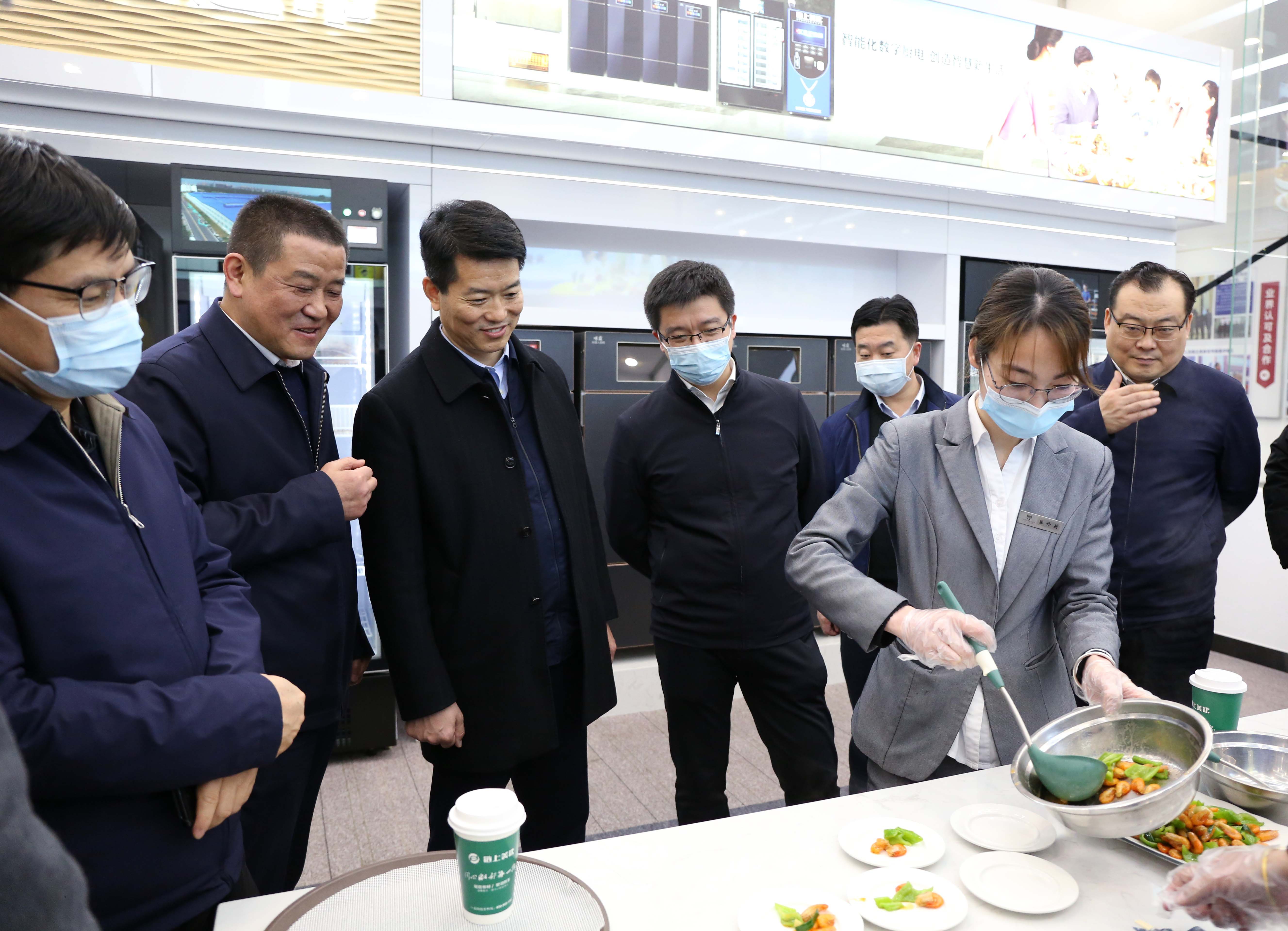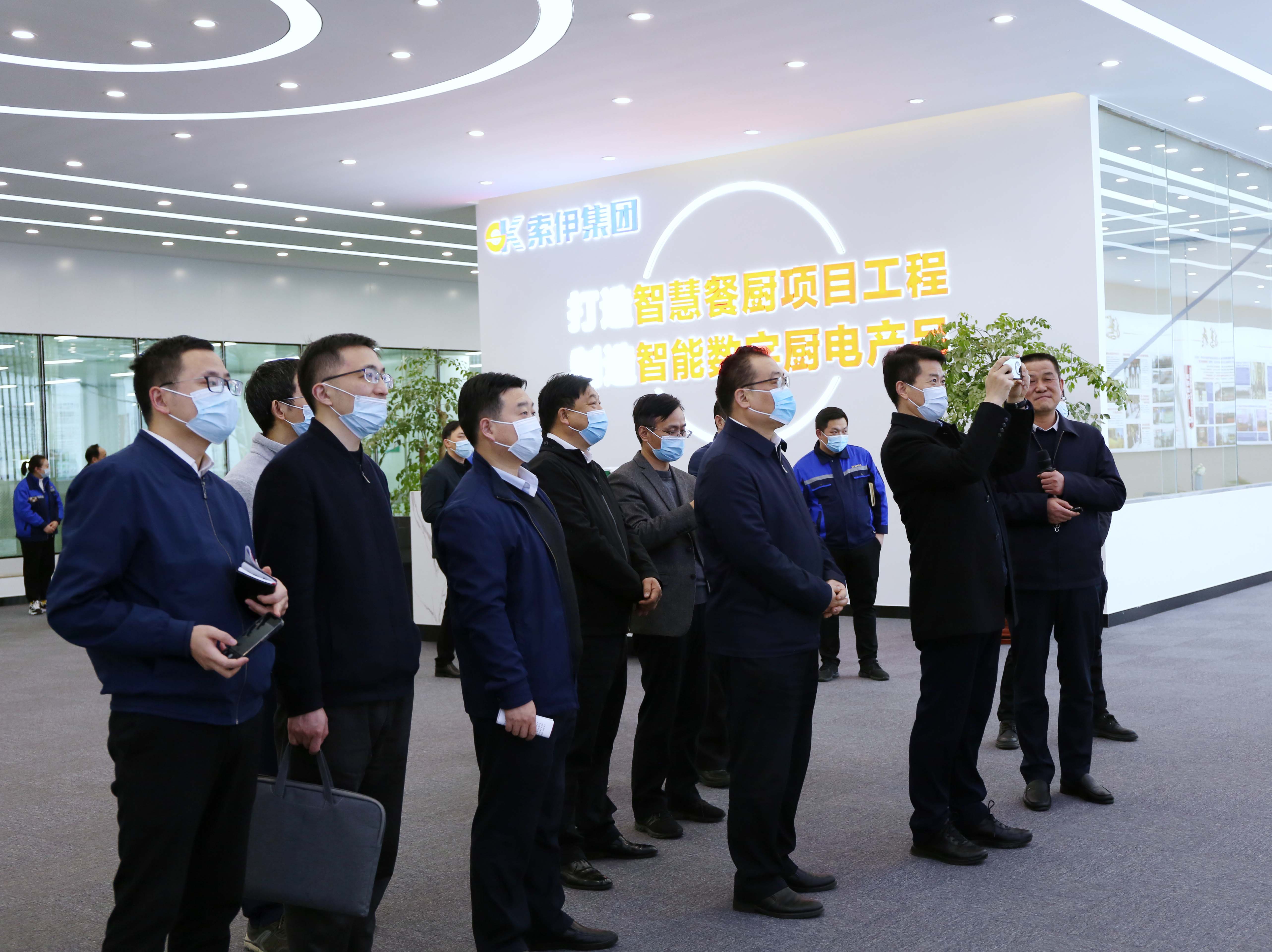 接著各位領(lǐng)導(dǎo)來到集團(tuán)轉(zhuǎn)型展示廳,王董事長(zhǎng)向大家介紹了索伊集團(tuán)的發(fā)展歷程,以及企業(yè)如何走轉(zhuǎn)型升級(jí)之路,通過多年的探索,最終確定以“智慧餐廚項(xiàng)目工程”為核心的發(fā)展方向,以“智能化數(shù)字廚電新產(chǎn)品”研發(fā)、制造和應(yīng)用為核心的智能化數(shù)字化產(chǎn)業(yè)集群。創(chuàng)造性提煉出了二十一世紀(jì)餐飲行業(yè)發(fā)展的“八化”趨勢(shì),即“餐飲品牌化、廚房中央化、消費(fèi)智能化、應(yīng)用廣泛化、品質(zhì)一致化、品種多元化、食安溯源化、運(yùn)營(yíng)標(biāo)準(zhǔn)化”。張省長(zhǎng)聽了覺得很有創(chuàng)意,也非常有道理,高興地拿出手機(jī)拍下了“八化”的內(nèi)容。并對(duì)索伊集團(tuán)的戰(zhàn)略眼光,超前思維,精辟總結(jié)大為贊賞。更對(duì)索伊集團(tuán)把錢學(xué)森在1995年提出的“烹飪工業(yè)化將出現(xiàn)在21世紀(jì)中國(guó)的第六次產(chǎn)業(yè)革命中”這一偉大構(gòu)想,變成現(xiàn)實(shí)給予點(diǎn)贊。張省聽取了王瓊峰董事長(zhǎng)的匯報(bào)后,對(duì)索伊集團(tuán)的智慧餐廚項(xiàng)目工程給予充分的肯定。