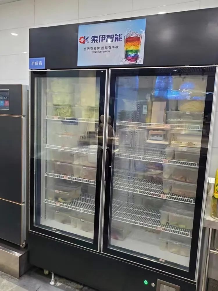 “冰冷保鮮柜”采用獨(dú)有冰溫冷鮮技術(shù),根據(jù)不同食材的溫、濕度及菌群環(huán)境,精準(zhǔn)控溫、控濕;超長波交變電磁場解凍,在避免食材的蛋白質(zhì)、維生素等營養(yǎng)成分不受破壞之外,最大程度保持食材口味;負(fù)離子抑菌技術(shù),結(jié)合數(shù)字中央廚房加工工藝,實(shí)現(xiàn)菜品食材的長久保鮮,可達(dá)15天以上。